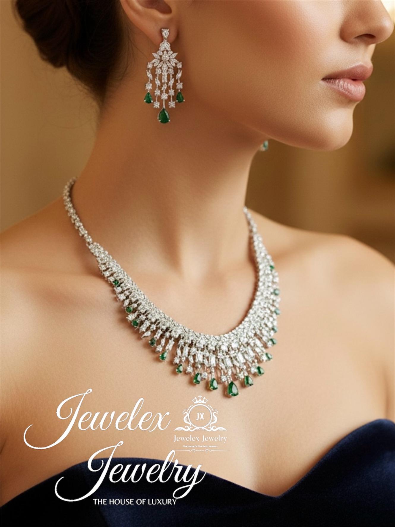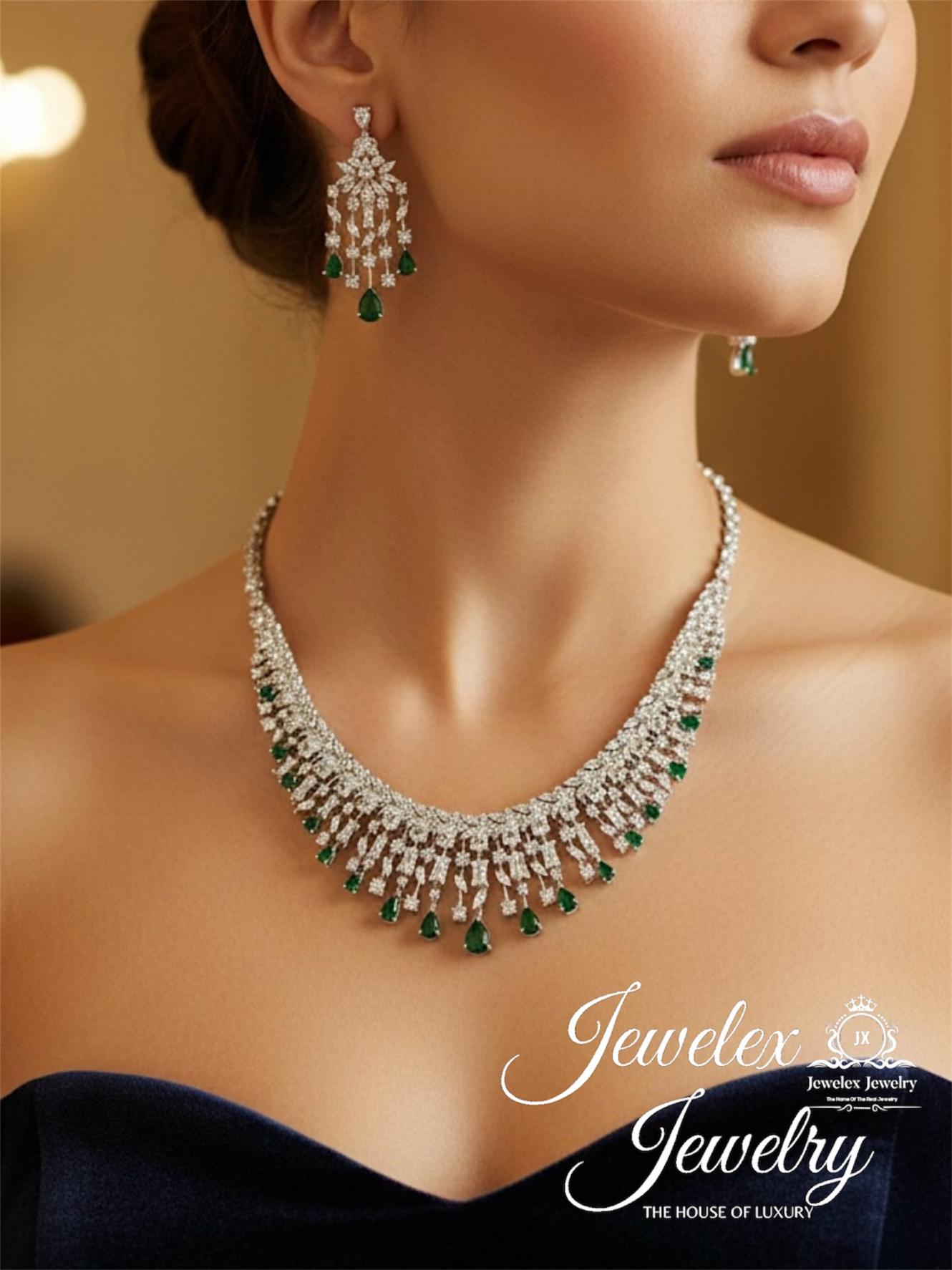 Description: Silver jewelry that speaks sophistication and contemporary charm. Diamond style jewelry in high quality materials including German silver, zirconia and American diamonds and colored stones. Our Glam collection Necklace Sets that are versatile to style and dazzle bright. Adorn yourself in glamour with scintillating glam collection. Enjoy the luxury experience with Jewelex Jewelry.