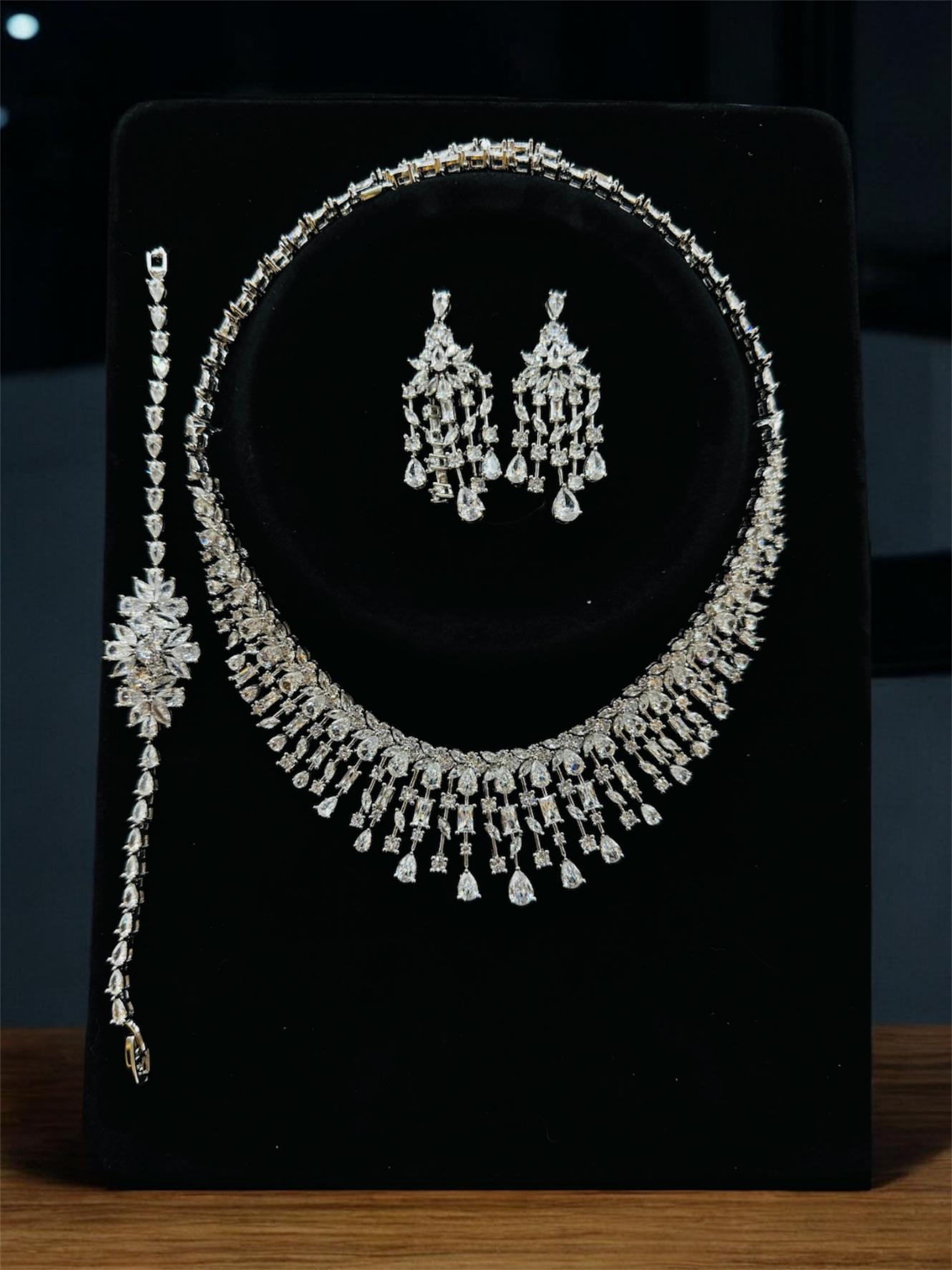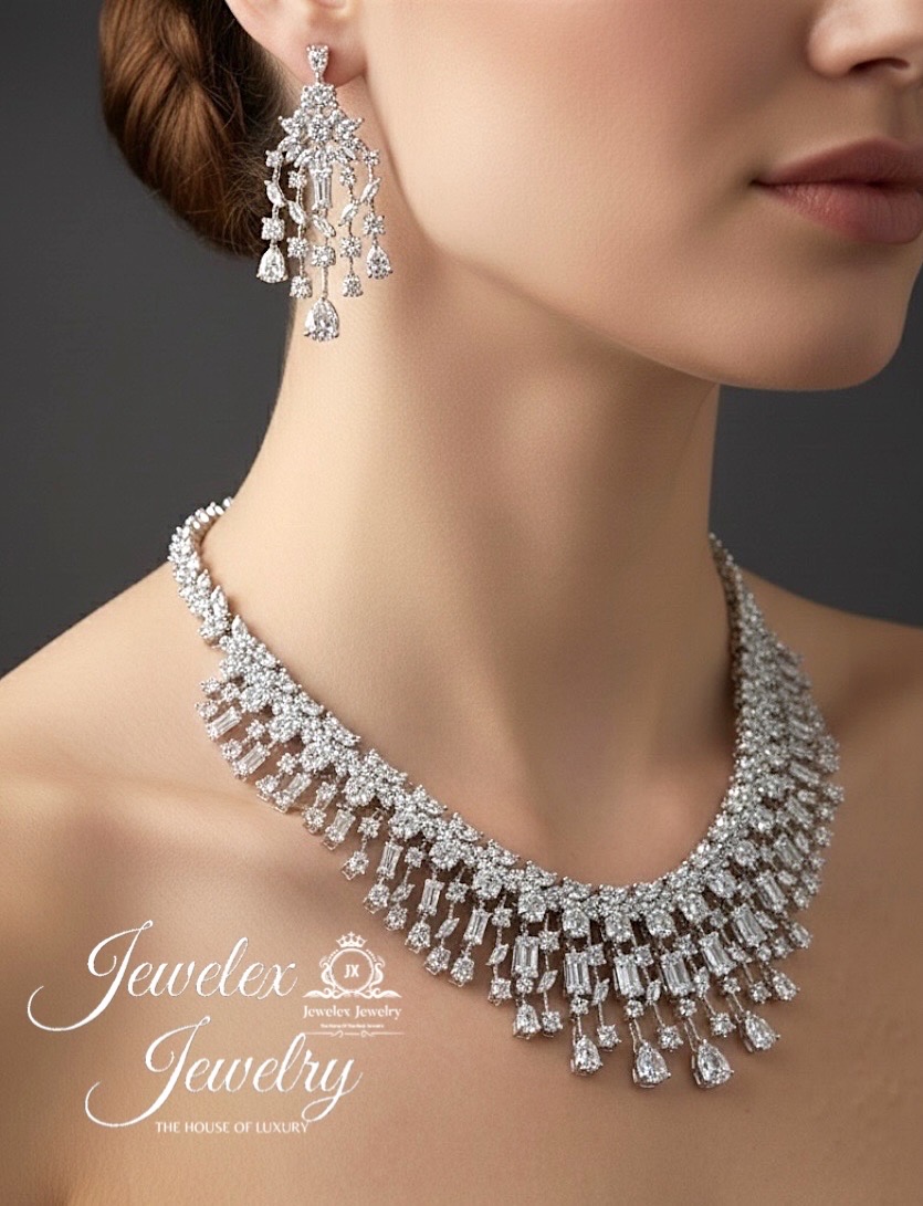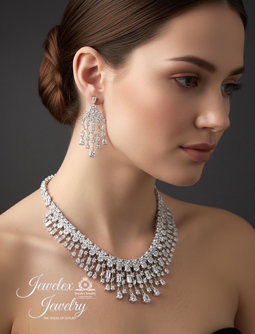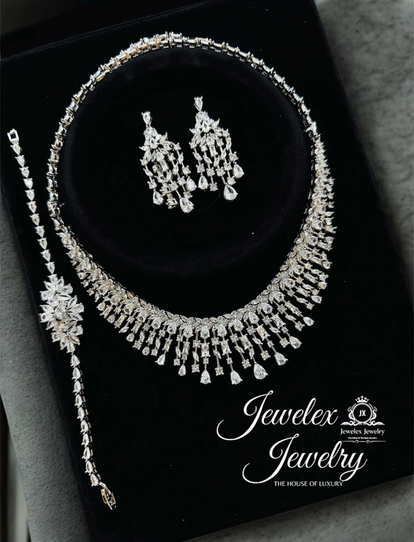 Description: Silver jewelry that speaks sophistication and contemporary charm. Diamond style jewelry in high quality materials including German silver, zirconia and American diamonds and colored stones. Our Glam collection Necklace Sets that are versatile to style and dazzle bright. Adorn yourself in glamour with scintillating glam collection. Enjoy the luxury experience with Jewelex Jewelry.