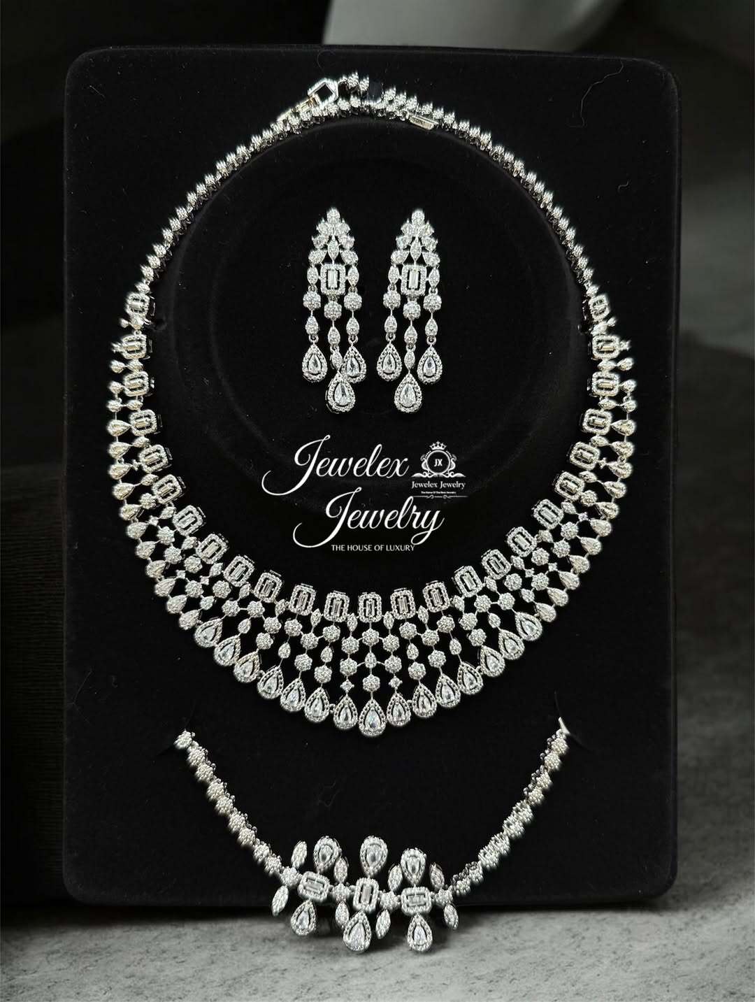 Description: Silver jewelry that speaks sophistication and contemporary charm. Diamond style jewelry in high quality materials including German silver, zirconia and American diamonds and colored stones. Our Glam collection Necklace Sets that are versatile to style and dazzle bright. Adorn yourself in glamour with scintillating glam collection. Enjoy the luxury experience with Jewelex Jewelry.