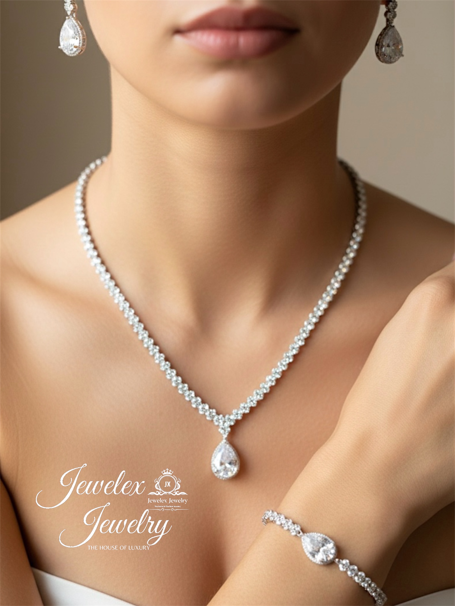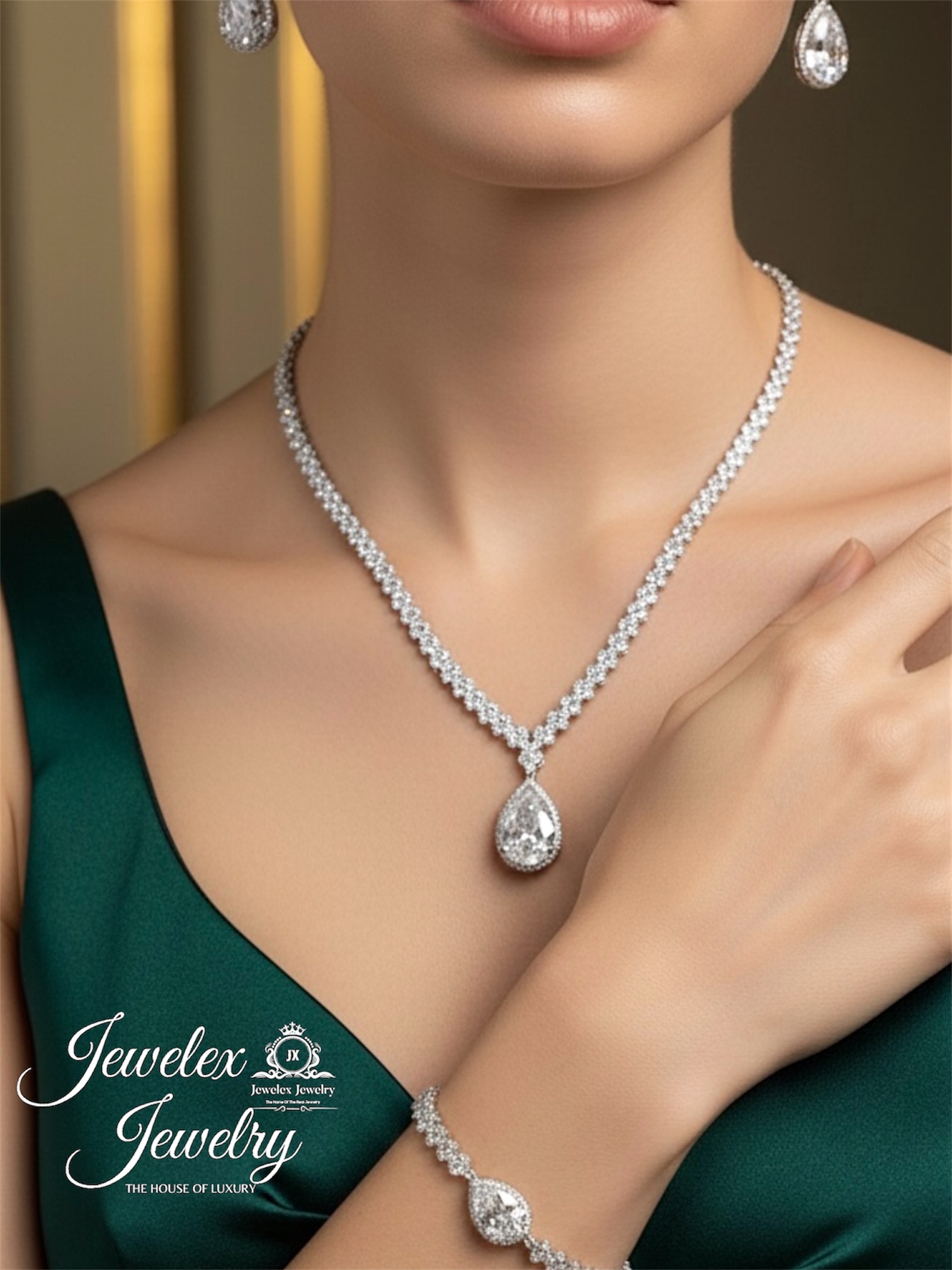 Description: Silver jewelry that speaks sophistication and contemporary charm. Diamond style jewelry in high quality materials including German silver, zirconia and American diamonds and colored stones. Our Glam collection Necklace Sets that are versatile to style and dazzle bright. Adorn yourself in glamour with scintillating glam collection. Enjoy the luxury experience with Jewelex Jewelry.