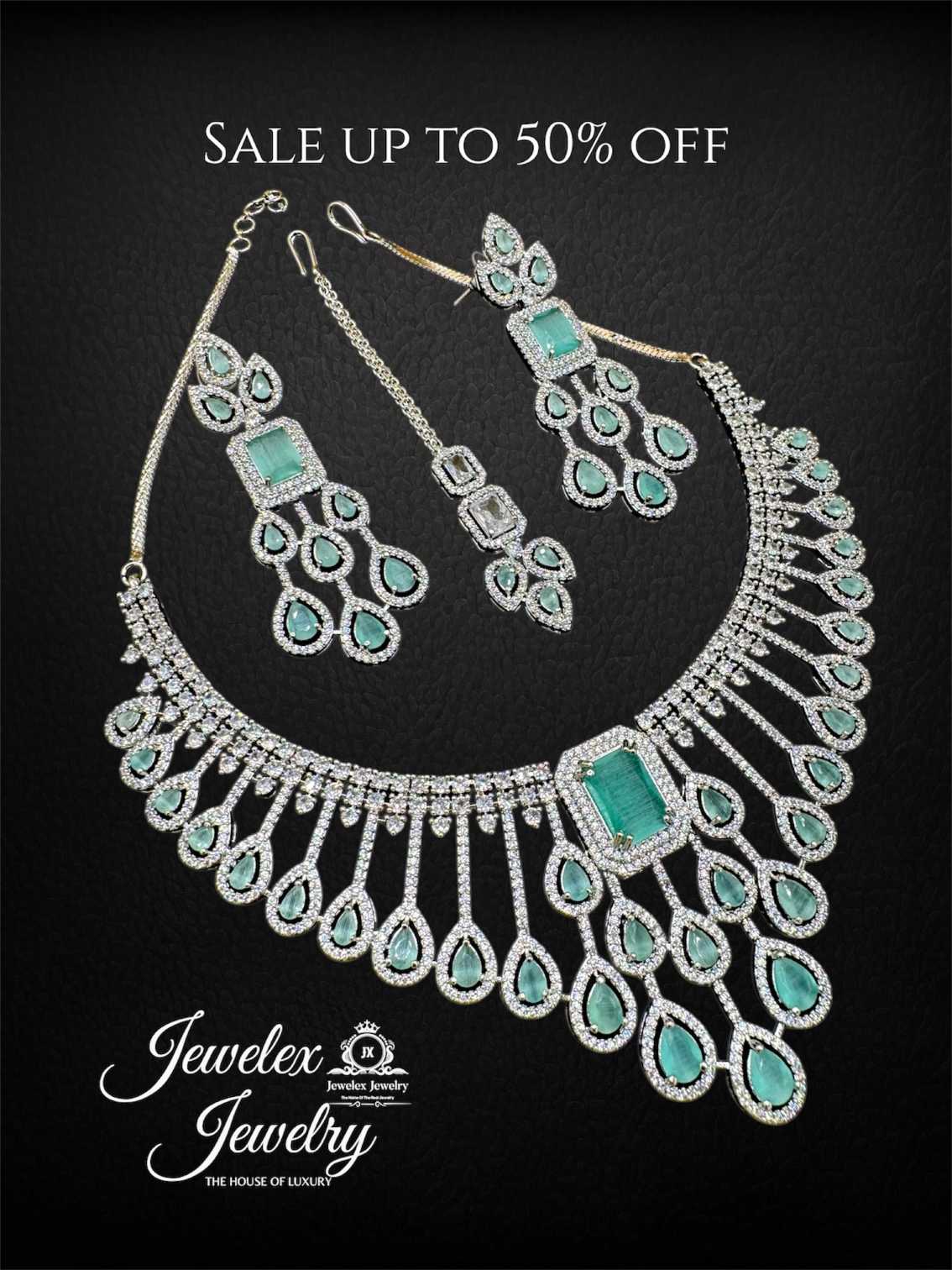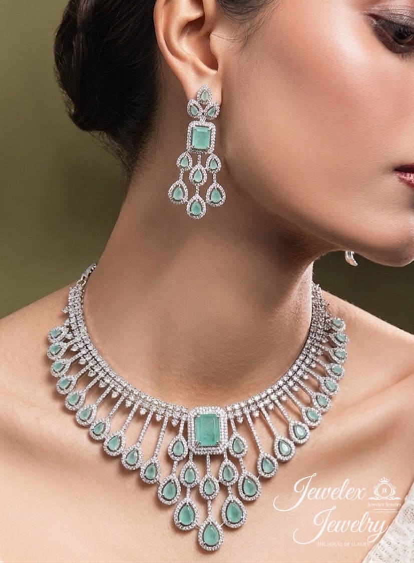 Description: Radiate heritage charm and timeless elegance with a bold, regal look. Silver jewelry that speaks sophistication and contemporary charm. Diamond style jewelry in high quality materials including German silver, zirconia and American diamonds and colored stones. Our Glam collection Necklace Sets that are versatile to style and dazzle bright. Adorn yourself in glamour with scintillating glam collection. Enjoy the luxury experience with Jewelex Jewelry.