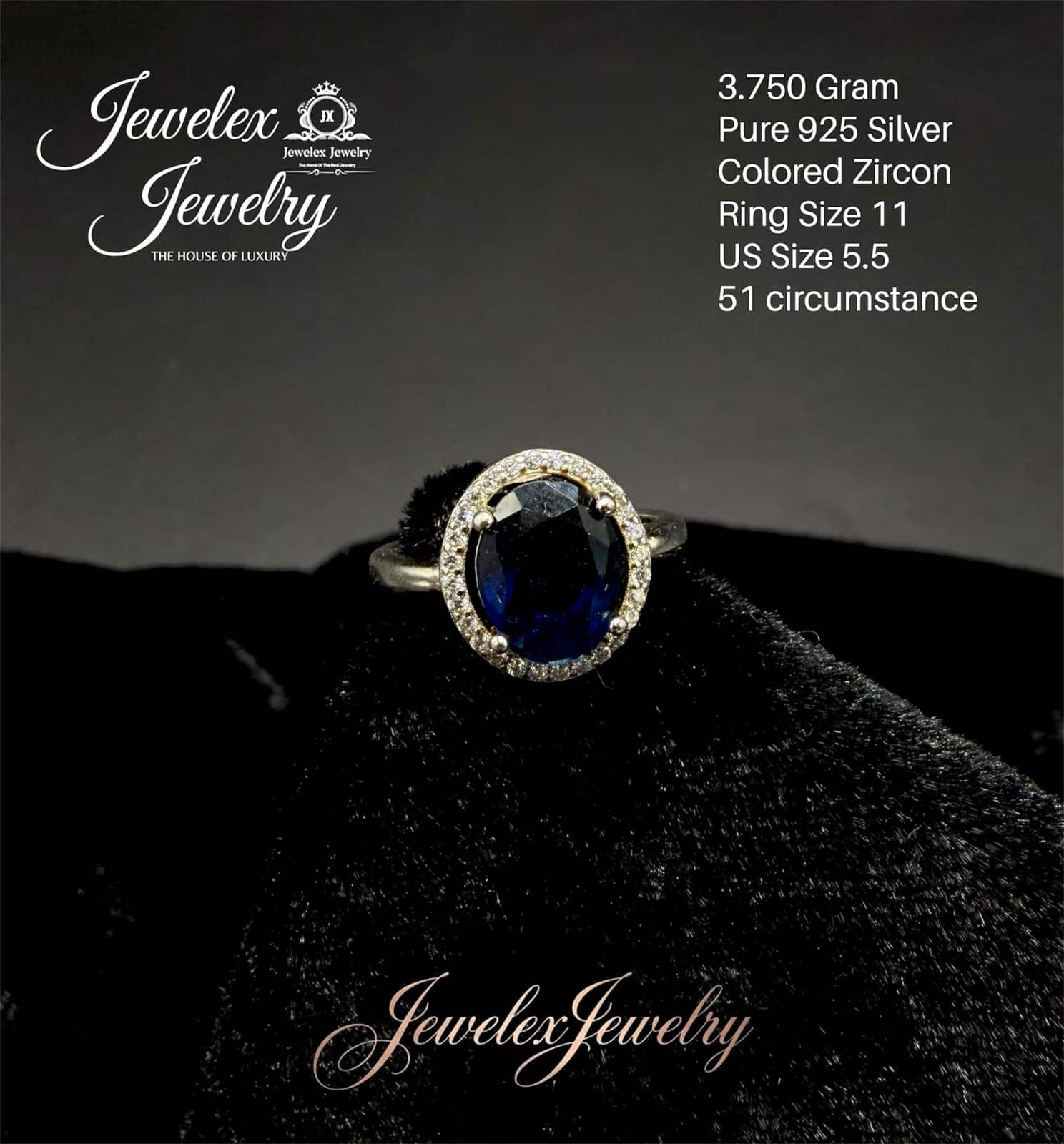 • Stone: Oval-cut deep blue zircon.