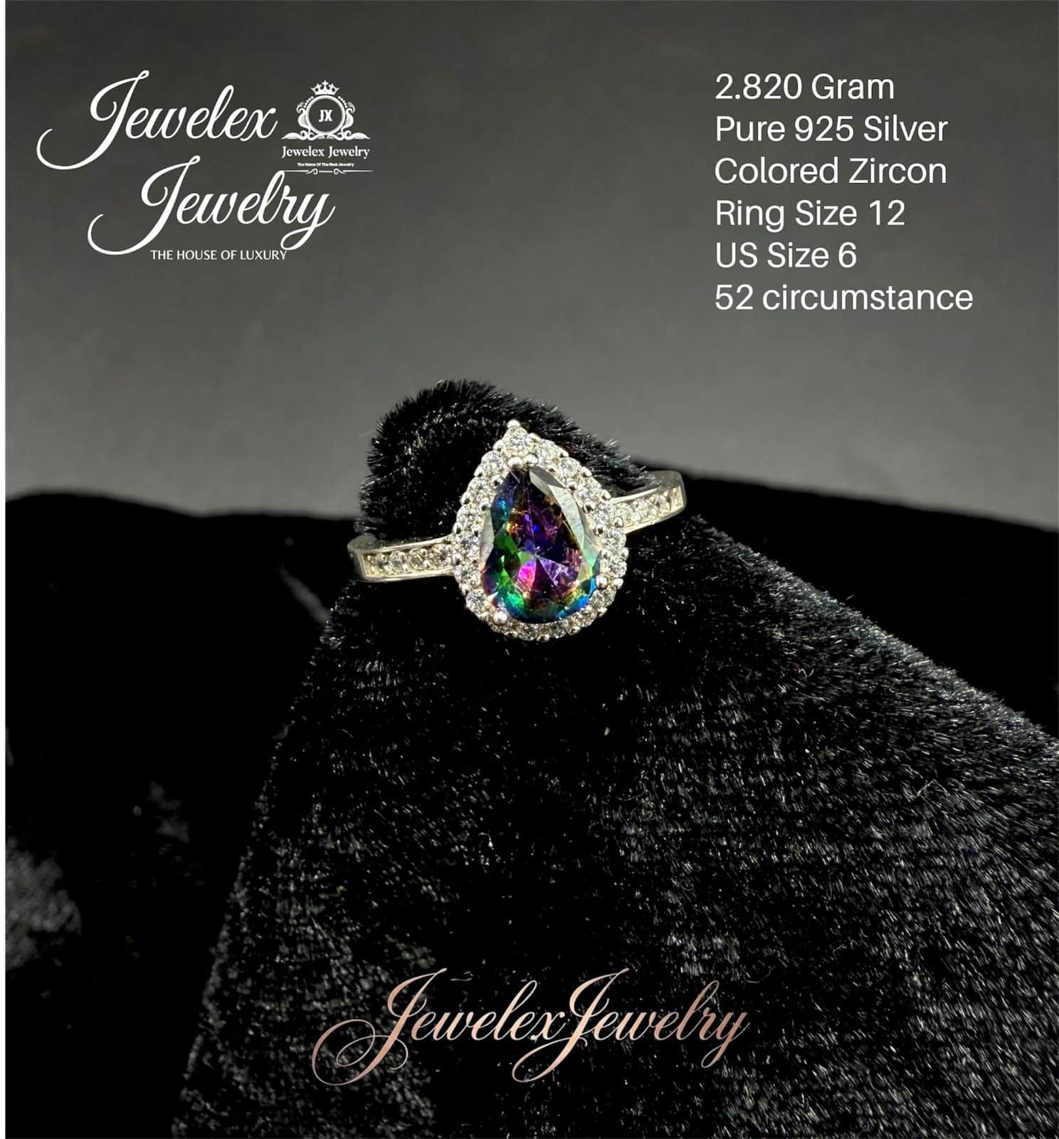 • Stone: pear-cut mystic zircon halo 925 silver ring wgt2.260.